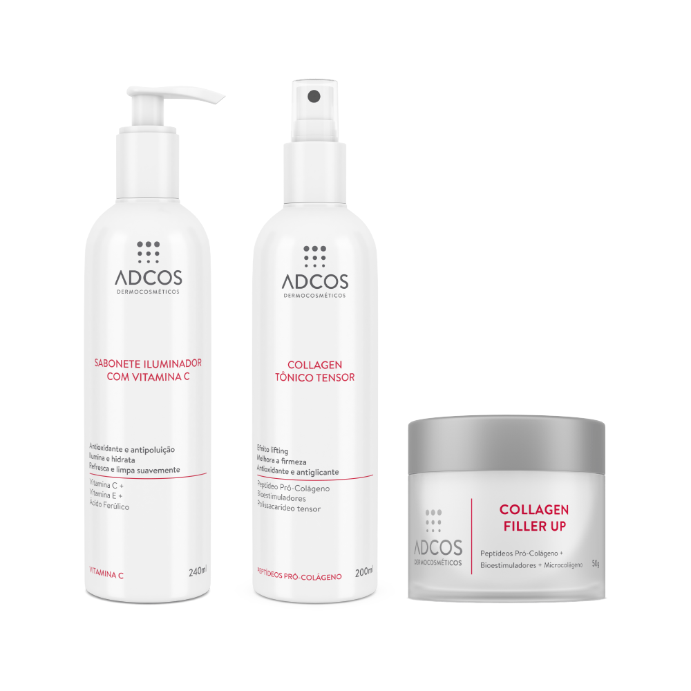 COLLAGEN TรNICO TENSOR: tรดnico antienvelhecimento com aรงรฃo firmante, que estimula, protege, repรตe e repara o colรกgeno. Possui efeito tensor imediato e invisรญvel, efeito lifting e equilibra o pH da pele. ร indicado para peles maduras e desvitalizadas, mas pode ser usado por todos os tipos de pele.