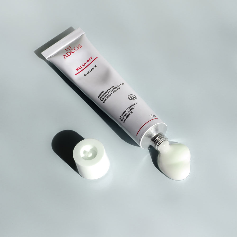 O Melan-Off Clareador da Adcos Γ© um creme clareador com fΓ³rmula tradicional, desenvolvida com associaΓ§Γ£o exclusiva de ativos: Alphawhite Complex, Vitamina C pura 5%, Hexylresorcinol e Alfa Arbutin, que atuam sinergicamente no clareamento, na renovaΓ§Γ£o celular e na revitalizaΓ§Γ£o.