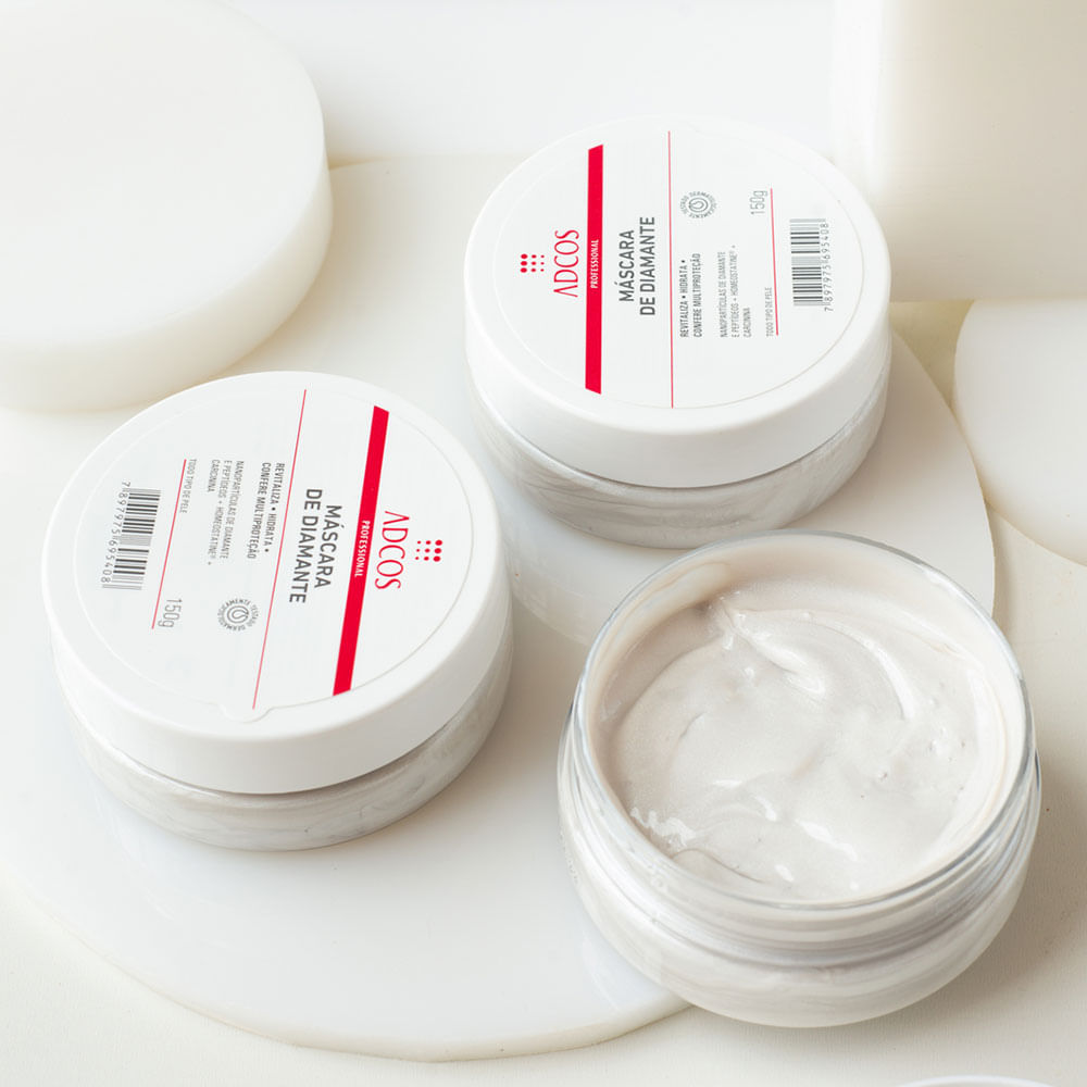 A Máscara de Diamante possui nanopartículas de diamante associadas a peptídeos que possuem ação comprovada na melhora da longevidade celular. Promove ação detox, tem ação intensiva e de longa duração no combate às rugas e ajuda a proteger o colágeno. Rejuvenesce, protege o DNA celular, revitaliza, devolve maciez e recupera o equilíbrio da pele. Proporciona multiproteção e é uma máscara facial indicada para todos os tipos de pele.