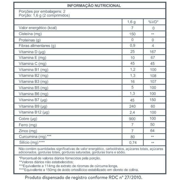 O ADCOS Nutri Cabelos e Unhas é um suplemento alimentar em cápsulas que fornece nutrientes fundamentais a base de Cúrcuma Longa, Silício Orgânico, Biotina, Zinco, Cisteína, Niacinamida, Vitaminas e Minerais.
